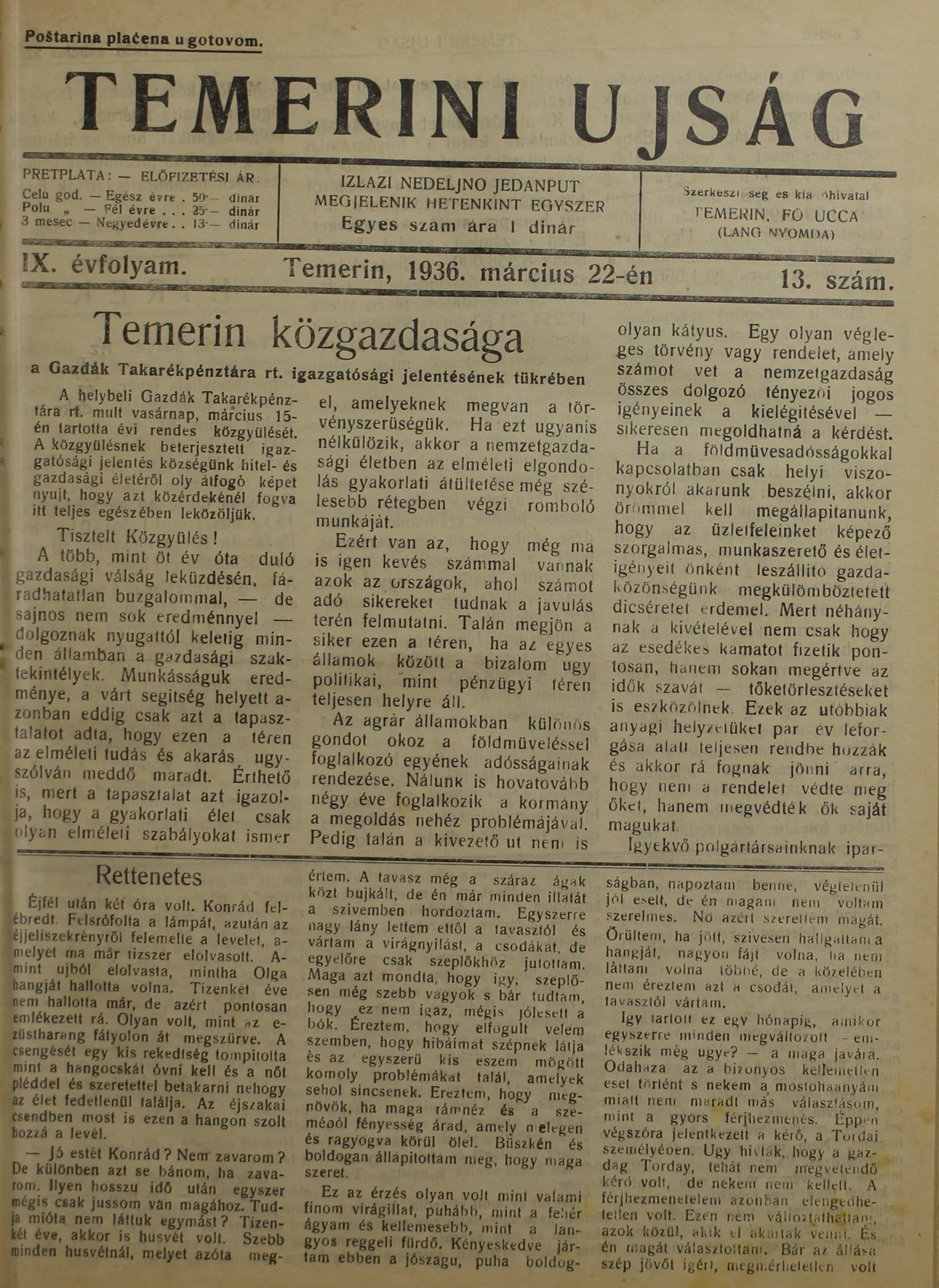 Temerini Újság 1928-1944, 9. évf. 1936. március 22. 13. sz.