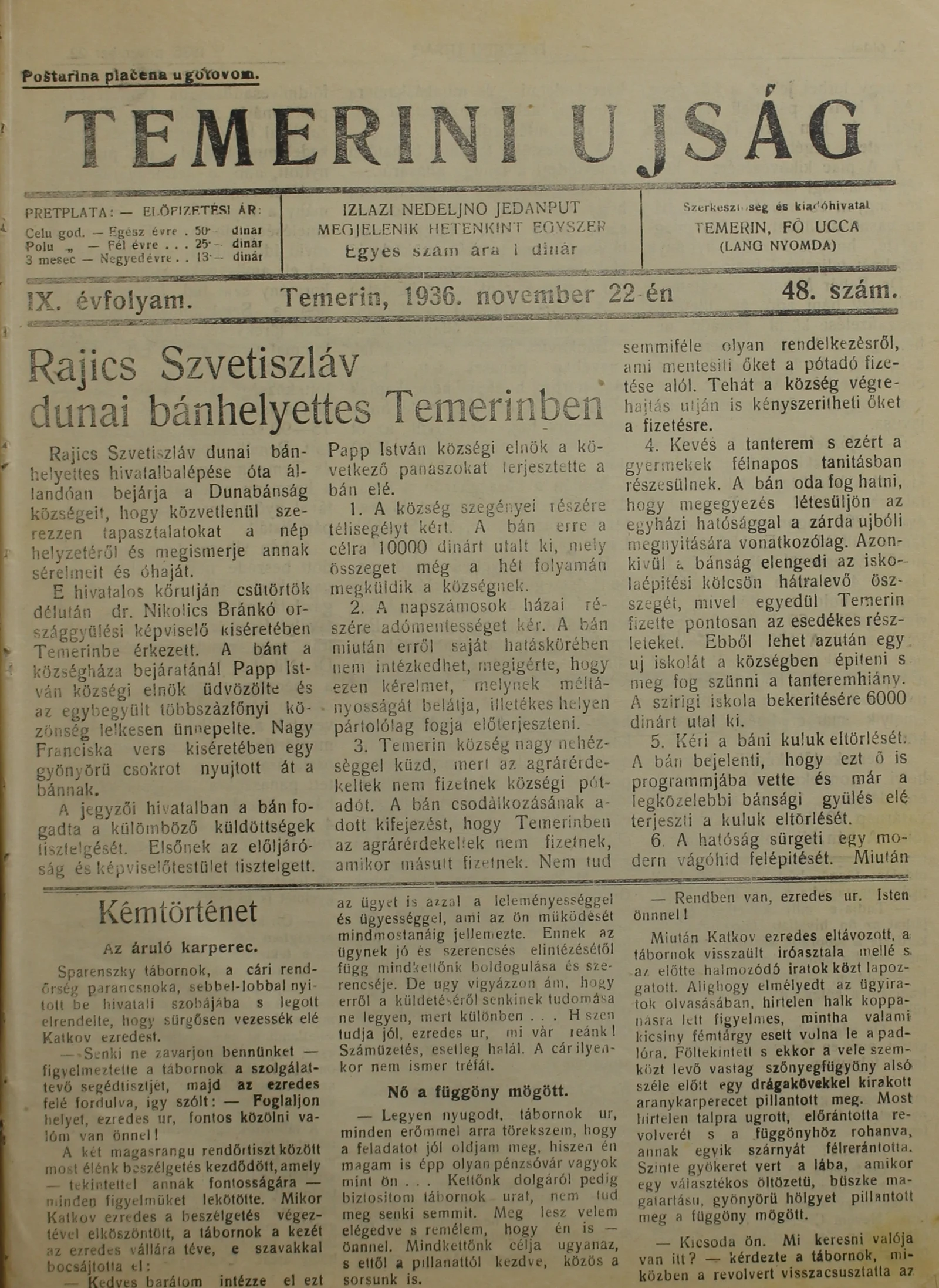 Temerini Újság 1928-1944, 9. évf. 1936. november 22. 48. sz.