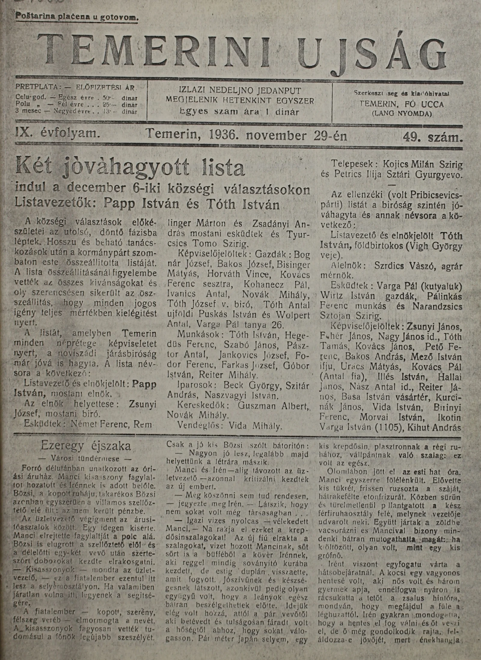 Temerini Újság 1928-1944, 9. évf. 1936. november 29. 49. sz.