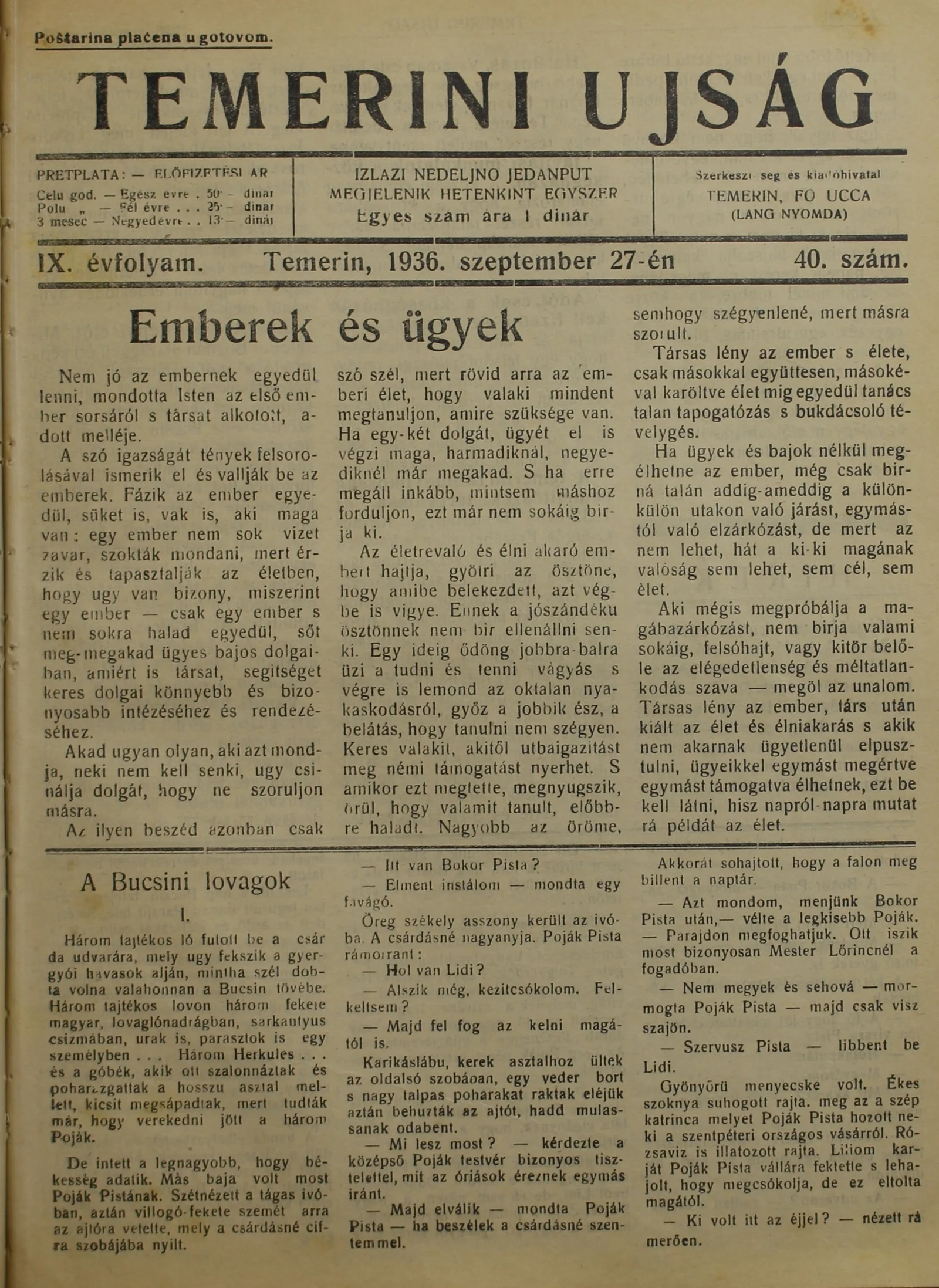 Temerini Újság 1928-1944, 9. évf. 1936. szeptember 27. 40. sz.