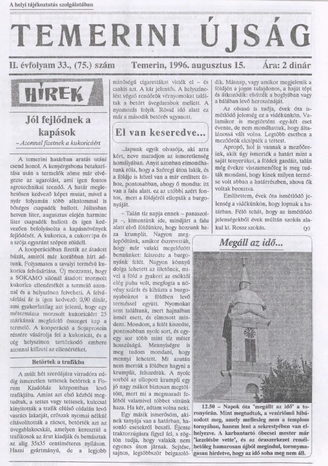 Temerini Újság, 2. évf. 1996. augusztus 15. 33. sz.