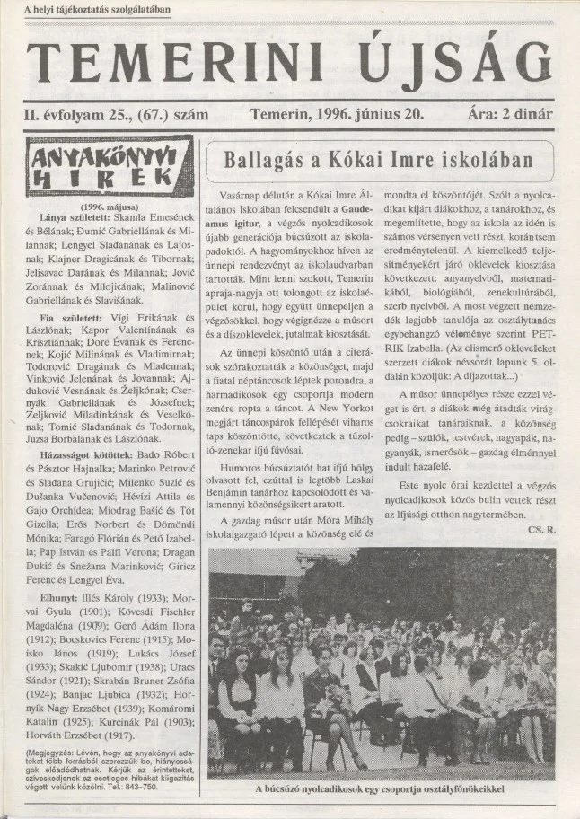 Temerini Újság, 2. évf. 1996. június 20. 25. sz.