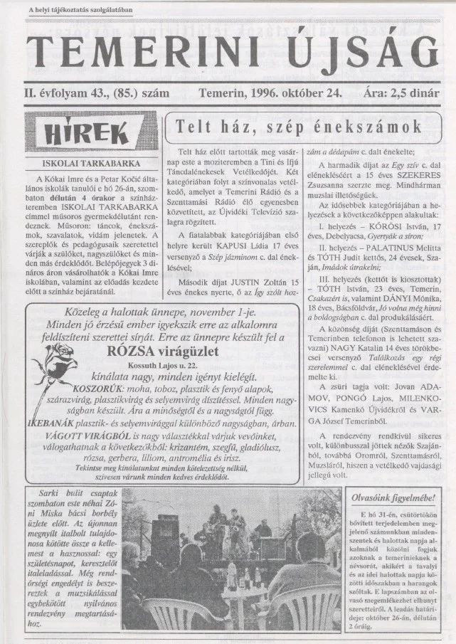 Temerini Újság, 2. évf. 1996. október 24. 43. sz.