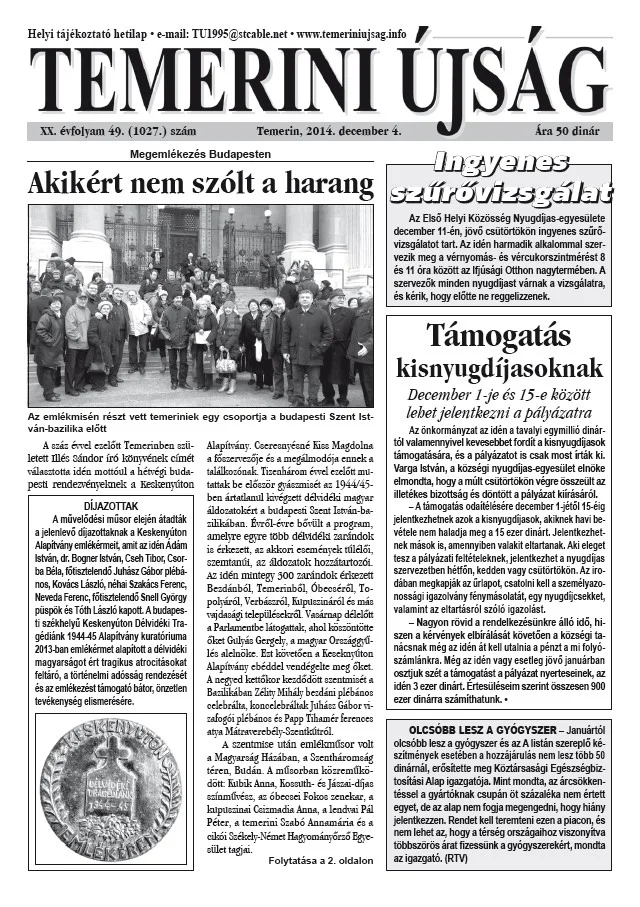 Temerini Újság, 20. évf. 2014. december 4. 49. sz.