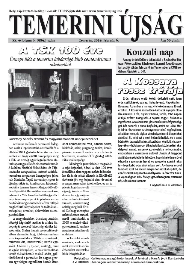 Temerini Újság, 20. évf. 2014. február 6. 6. sz.
