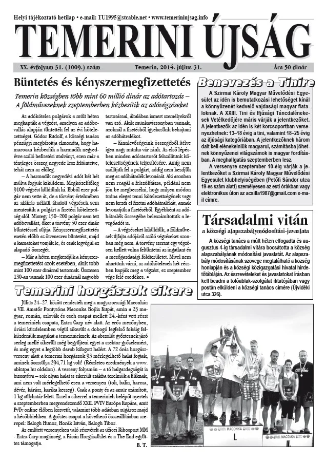 Temerini Újság, 20. évf. 2014. július 31. 31. sz.