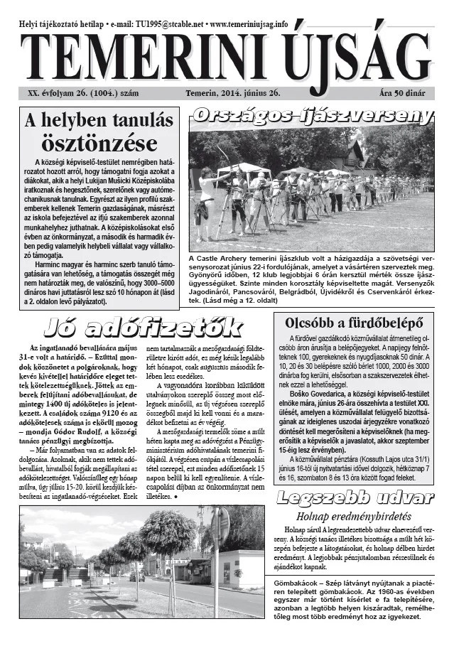 Temerini Újság, 20. évf. 2014. június 26. 26. sz.