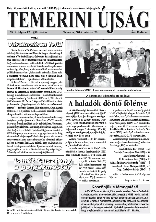 Temerini Újság, 20. évf. 2014. március 20. 12. sz.