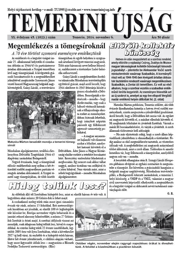 Temerini Újság, 20. évf. 2014. november 6. 45. sz.