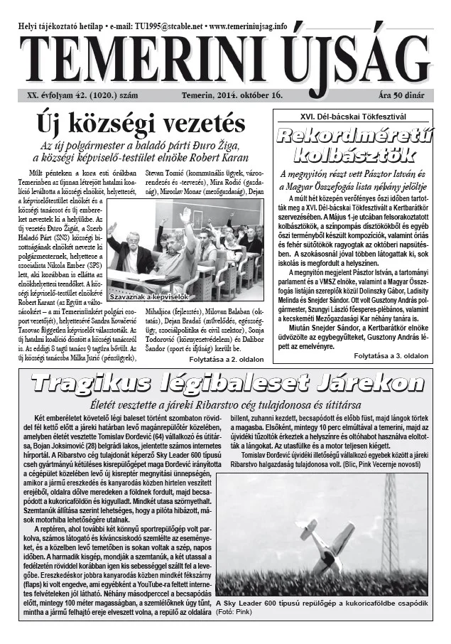 Temerini Újság, 20. évf. 2014. október 16. 42. sz.