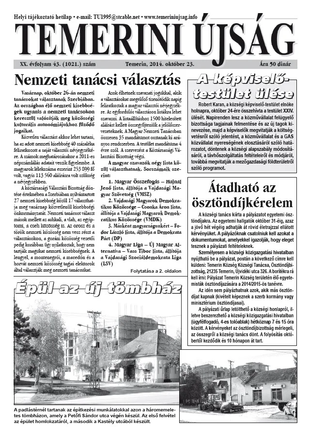 Temerini Újság, 20. évf. 2014. október 23. 43. sz.