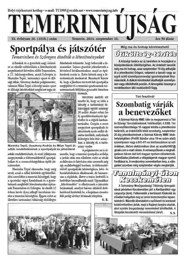 Temerini Újság, 20. évf. 2014. szeptember 18. 38. sz.
