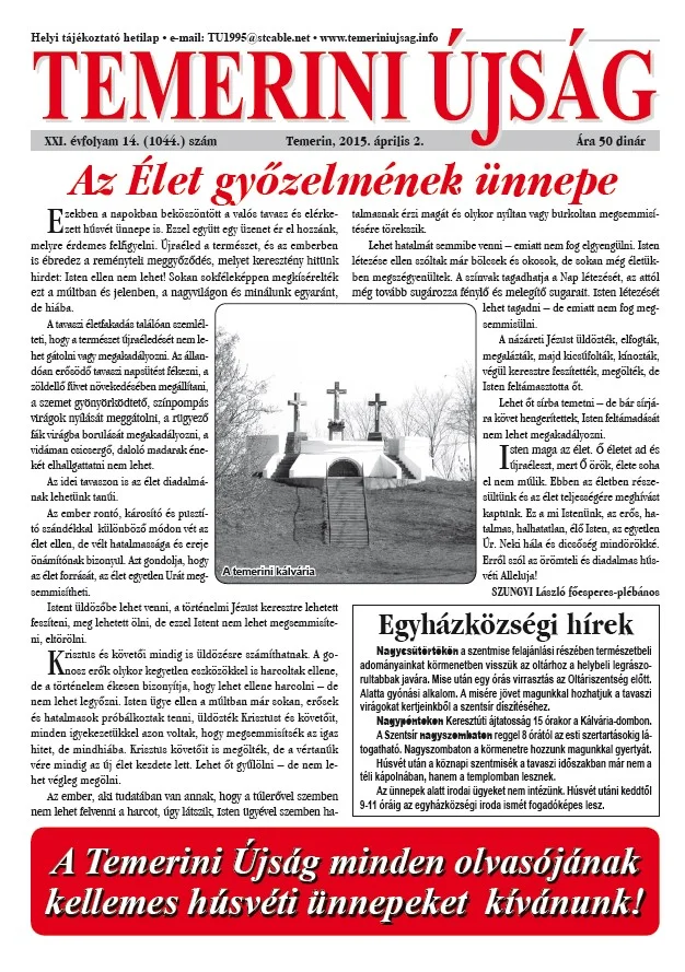 Temerini Újság, 21. évf. 2015. április 2. 14. sz.