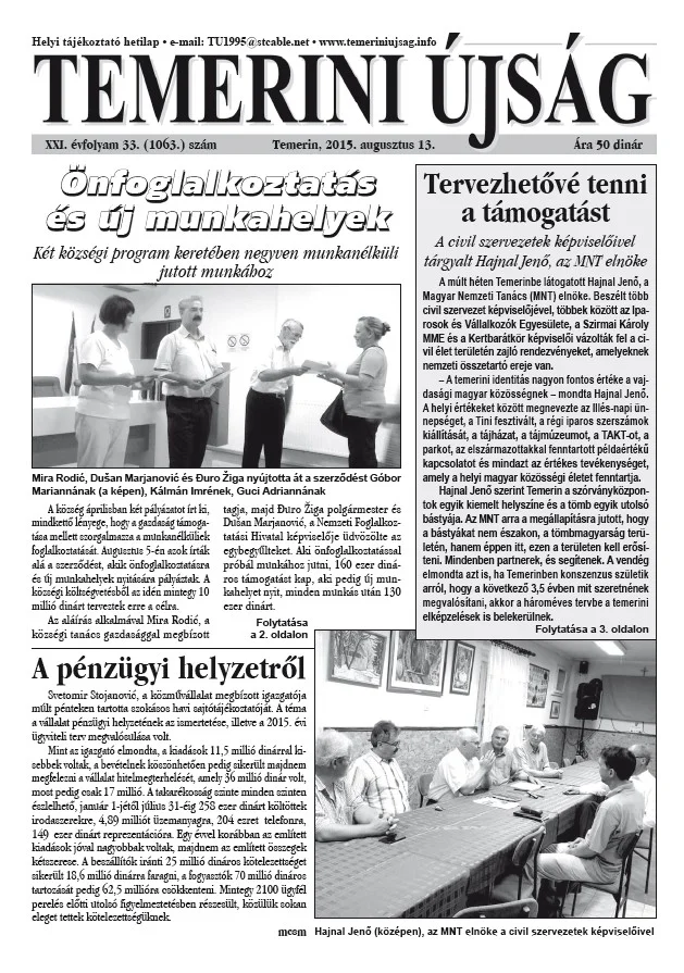 Temerini Újság, 21. évf. 2015. augusztus 13. 33. sz.