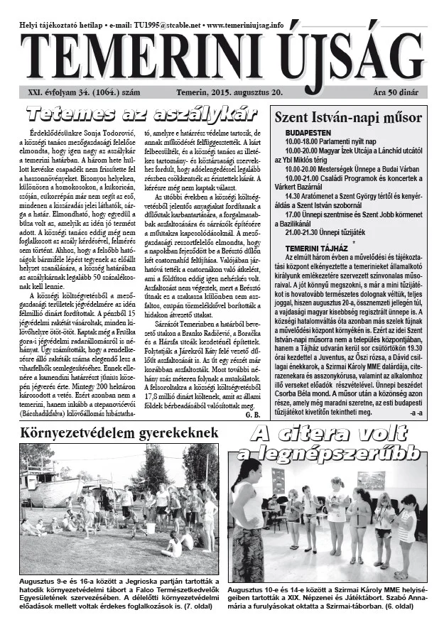 Temerini Újság, 21. évf. 2015. augusztus 20. 34. sz.
