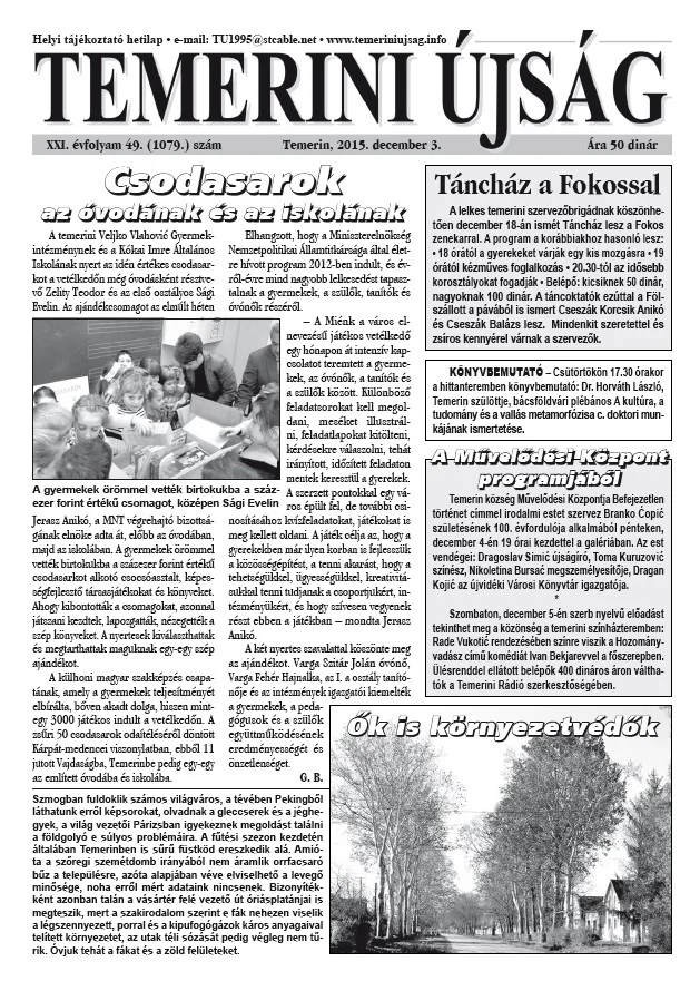 Temerini Újság, 21. évf. 2015. december 3. 49. sz.