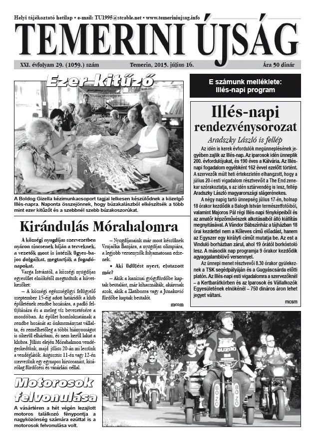 Temerini Újság, 21. évf. 2015. július 16. 29. sz.