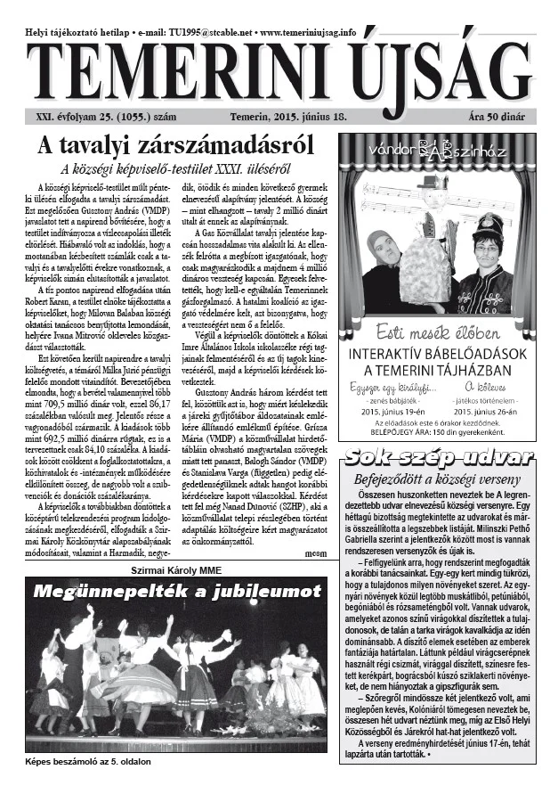 Temerini Újság, 21. évf. 2015. június 18. 25. sz.