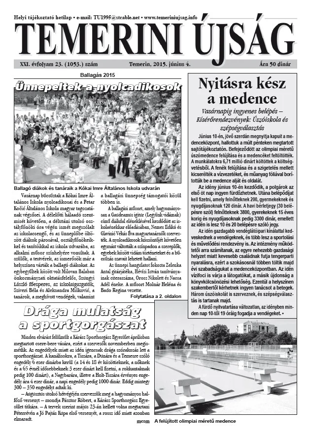 Temerini Újság, 21. évf. 2015. június 4. 23. sz.