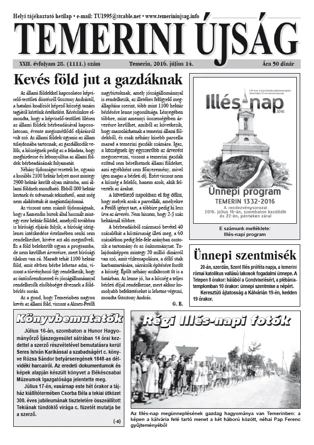 Temerini Újság, 22. évf. 2016. július 14. 28. sz.