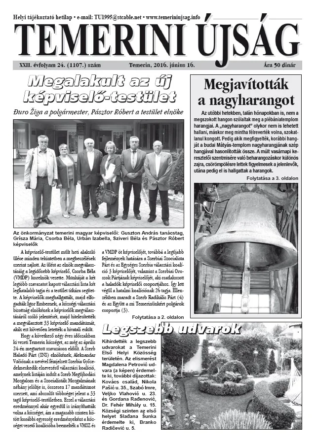 Temerini Újság, 22. évf. 2016. június 16. 24. sz.