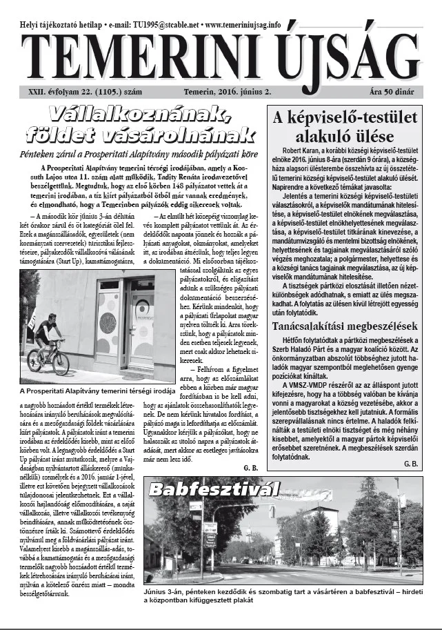 Temerini Újság, 22. évf. 2016. június 2. 22. sz.