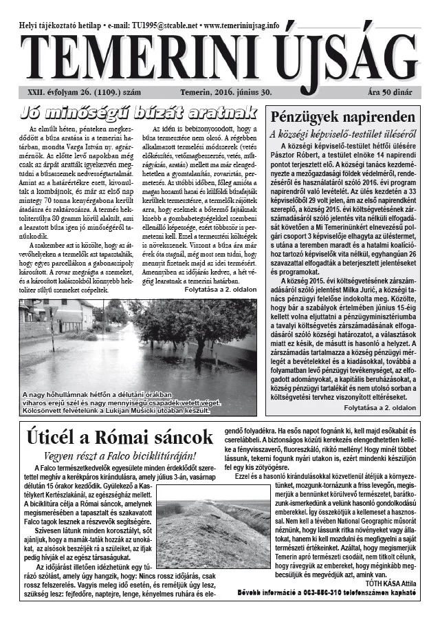 Temerini Újság, 22. évf. 2016. június 30. 26. sz.