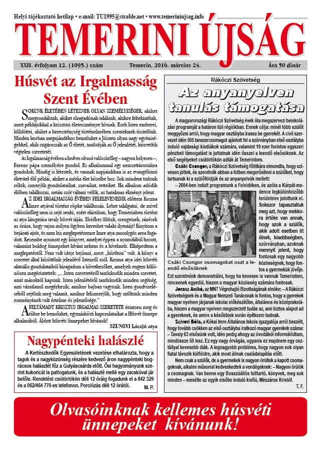 Temerini Újság, 22. évf. 2016. március 24. 12. sz.
