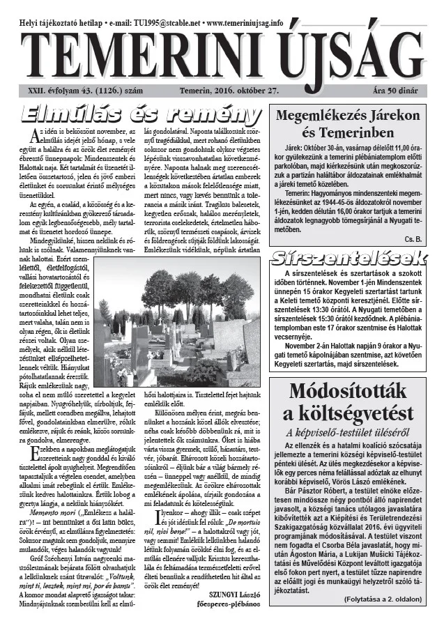 Temerini Újság, 22. évf. 2016. november 27. 43. sz.