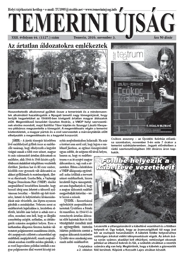 Temerini Újság, 22. évf. 2016. november 3. 44. sz.