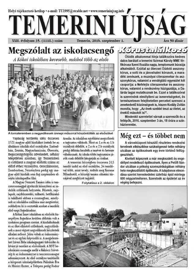 Temerini Újság, 22. évf. 2016. szeptember 1. 35. sz.