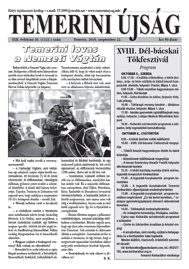 Temerini Újság, 22. évf. 2016. szeptember 22. 38. sz.