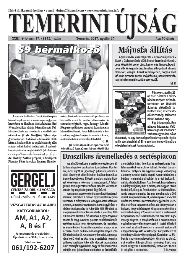 Temerini Újság, 23. évf. 2017. április 27. 17. sz.