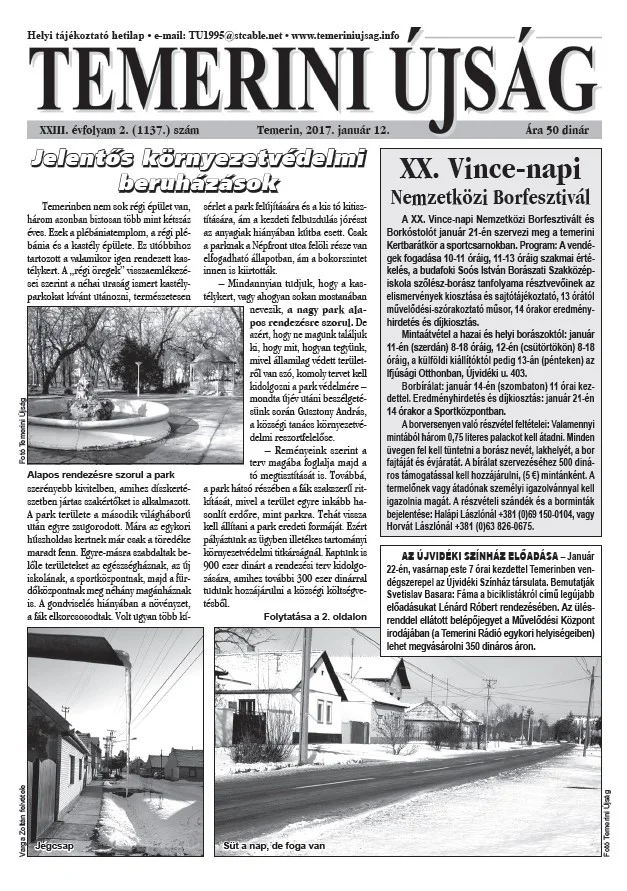 Temerini Újság, 23. évf. 2017. január 12. 2. sz.
