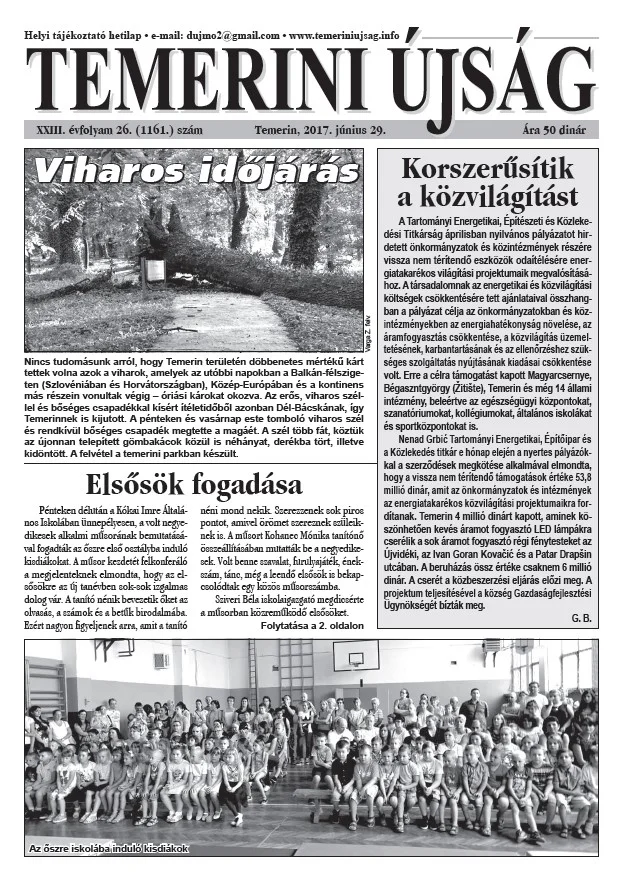Temerini Újság, 23. évf. 2017. június 29. 26. sz.