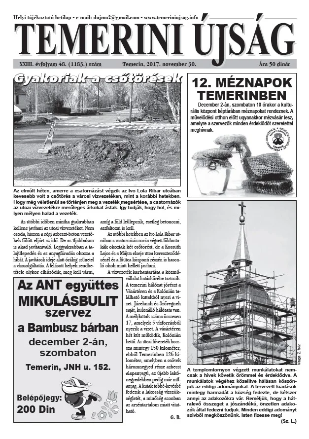 Temerini Újság, 23. évf. 2017. november 30. 48. sz.