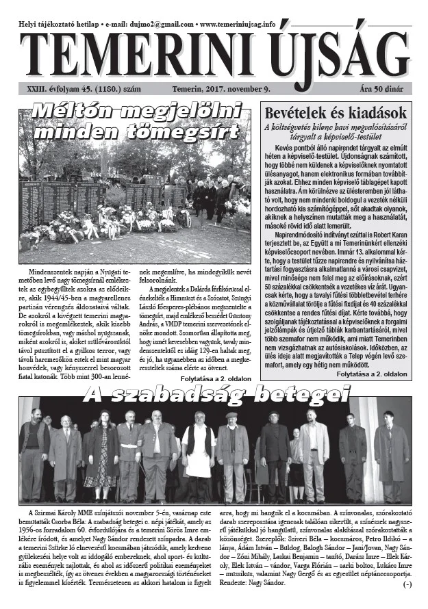 Temerini Újság, 23. évf. 2017. november 9. 45. sz.
