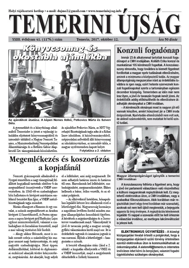 Temerini Újság, 23. évf. 2017. október 12. 41. sz.