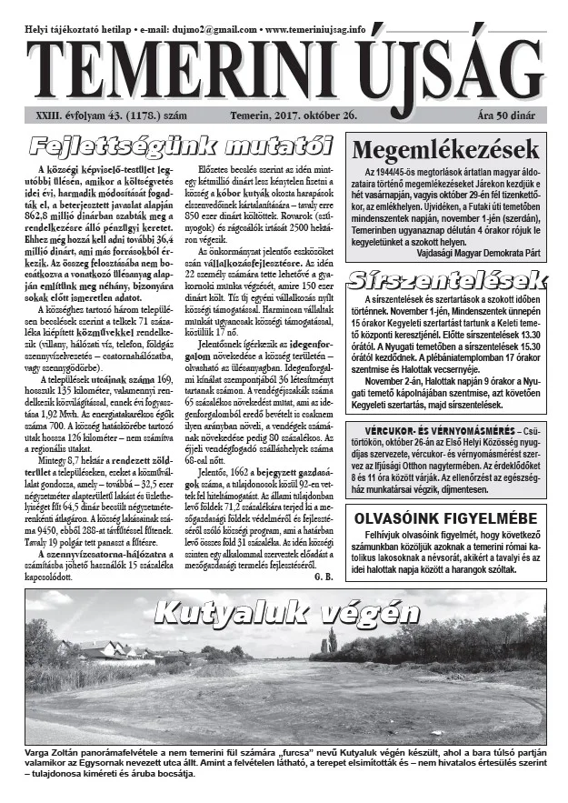 Temerini Újság, 23. évf. 2017. október 26. 43. sz.