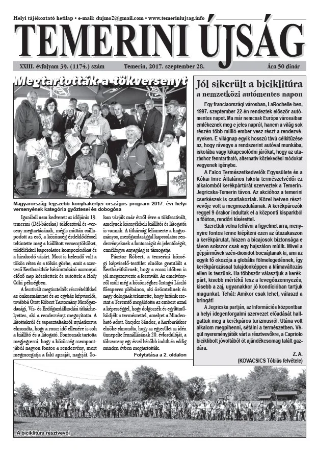 Temerini Újság, 23. évf. 2017. szeptember 28. 39. sz.