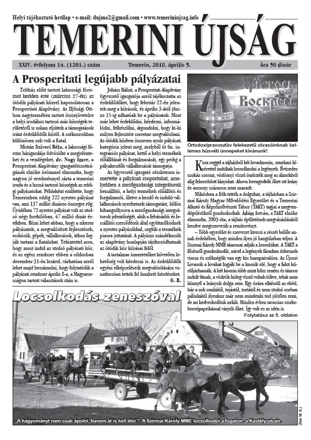 Temerini Újság, 24. évf. 2018. április 5. 14. sz.