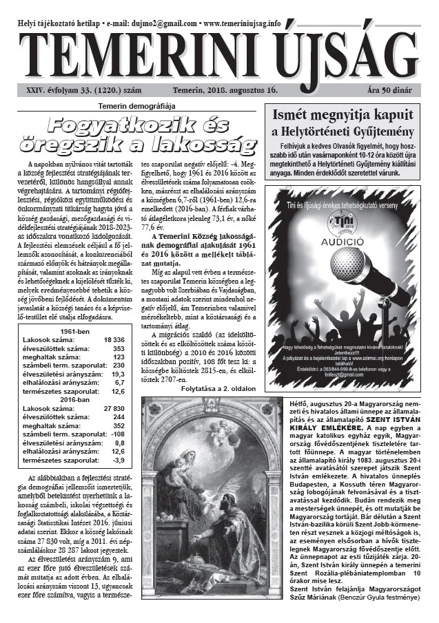 Temerini Újság, 24. évf. 2018. augusztus 16. 33. sz.