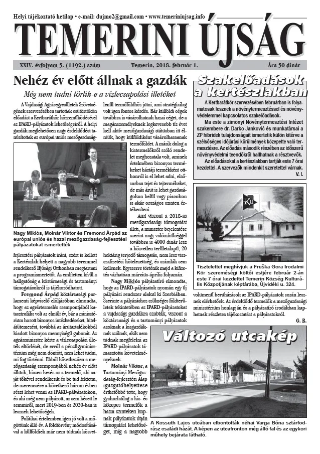 Temerini Újság, 24. évf. 2018. február 1. 5. sz.