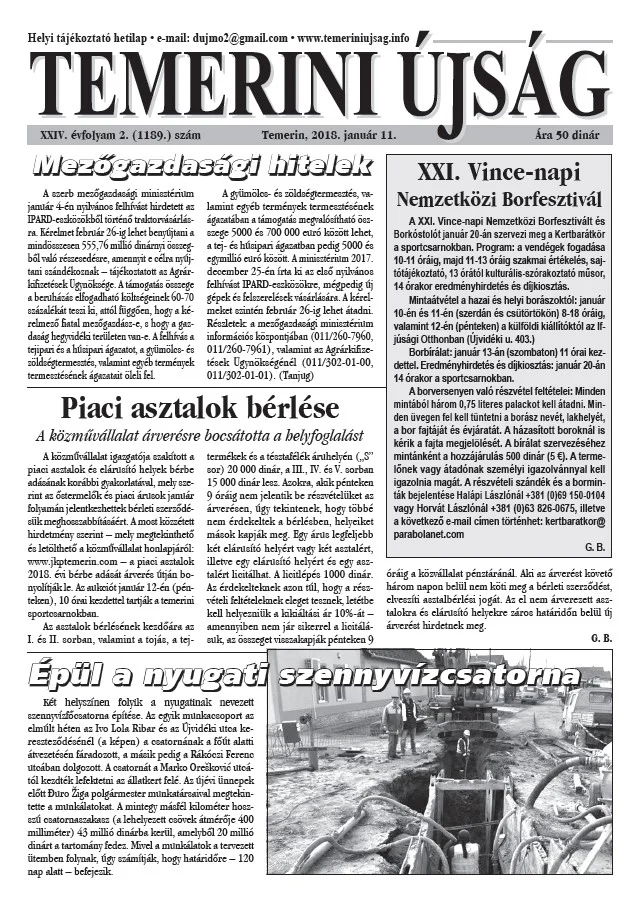 Temerini Újság, 24. évf. 2018. január 11. 2. sz.