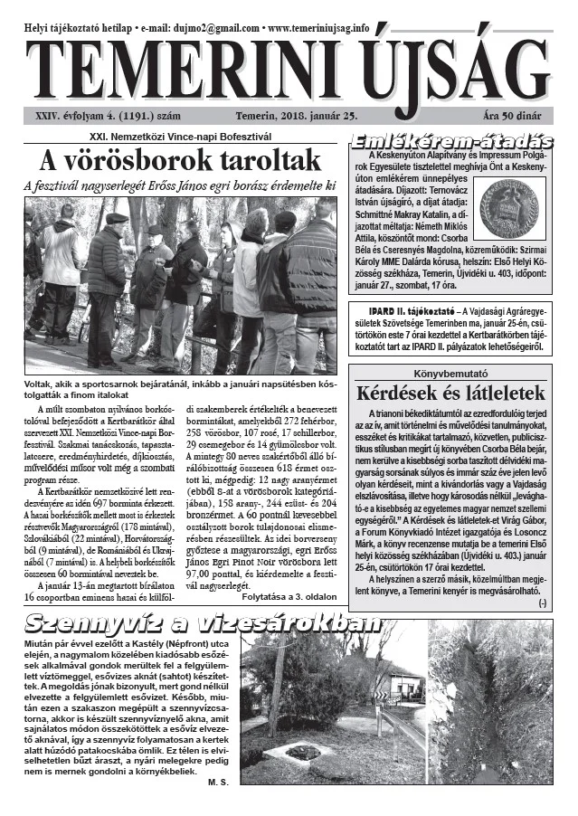 Temerini Újság, 24. évf. 2018. január 25. 4. sz.