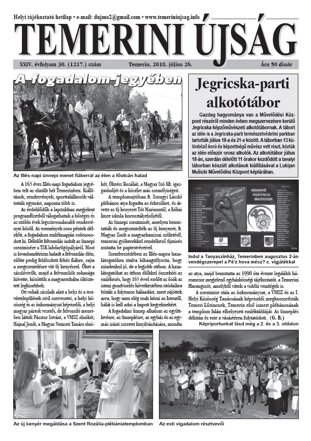 Temerini Újság, 24. évf. 2018. július 26. 30. sz.