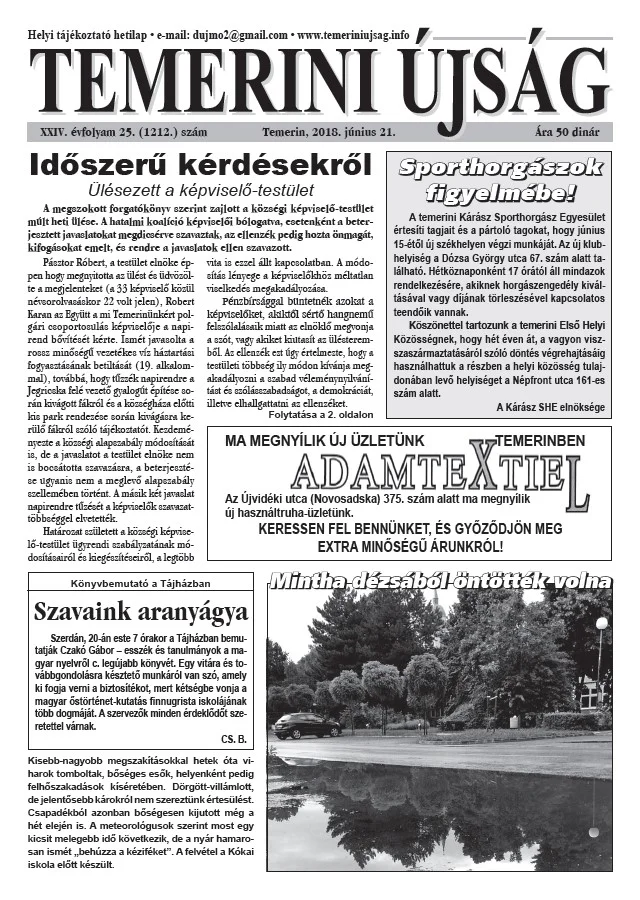 Temerini Újság, 24. évf. 2018. június 21. 25. sz.