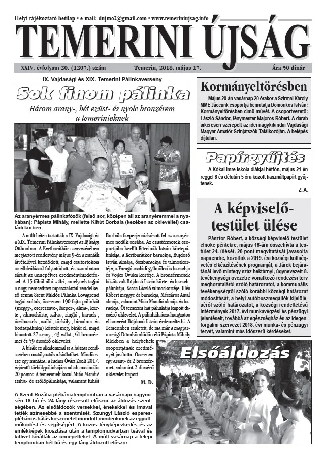 Temerini Újság, 24. évf. 2018. május 17. 20. sz.