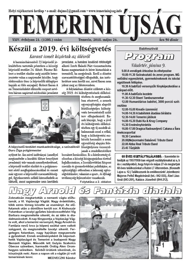 Temerini Újság, 24. évf. 2018. május 24. 21. sz.
