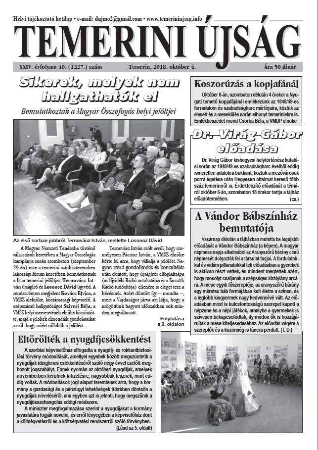 Temerini Újság, 24. évf. 2018. október 4. 40. sz.